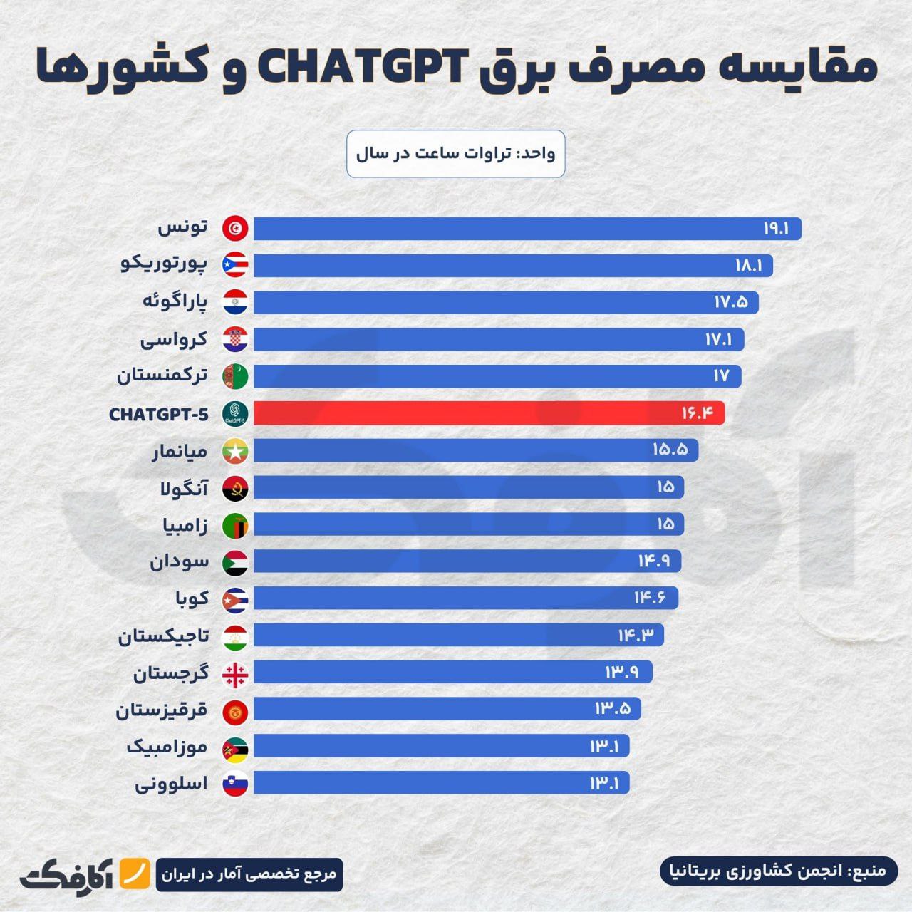 مصرف برق ChatGPT-5 به اندازه مصرف چند کشور است!