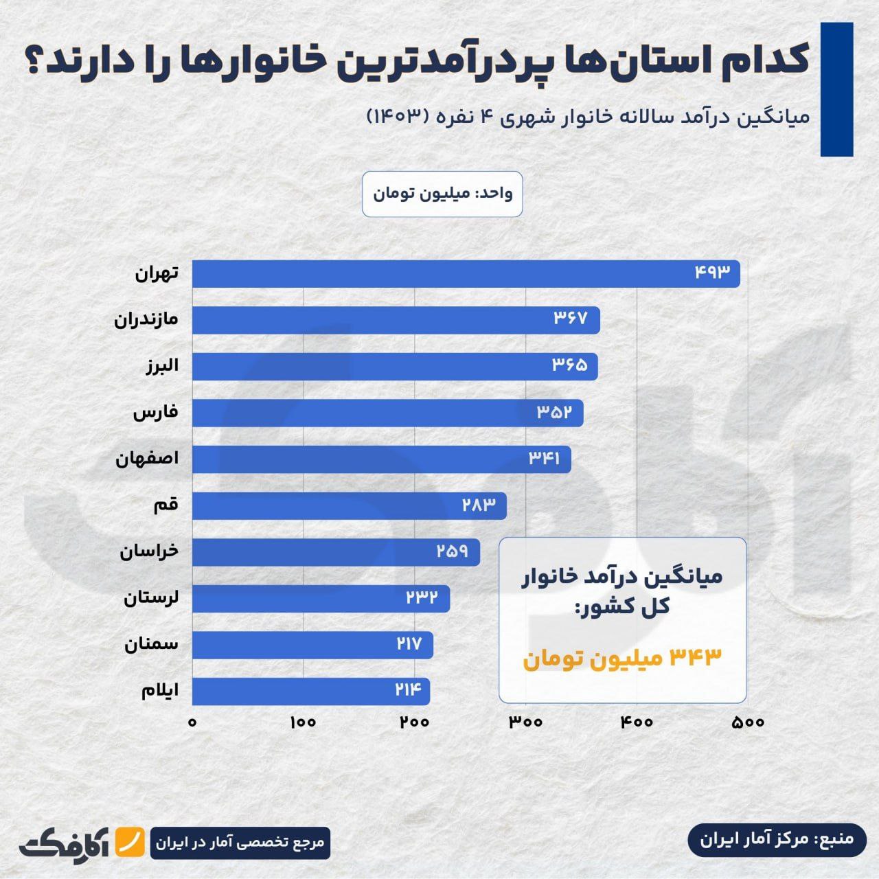 پردرآمدترین خانوارهای ایران در کدام استان‌ها هستند؟