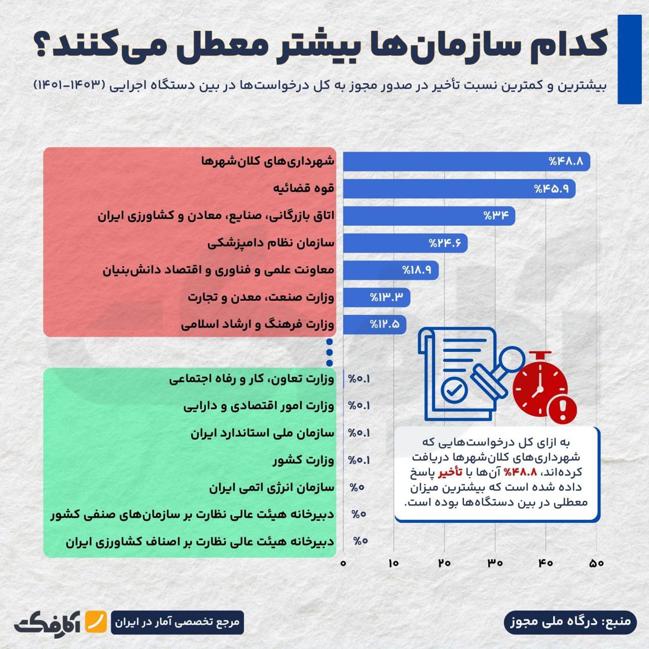 کدام نهادها برای صدور مجوز بیشتر معطل می‌کنند؟