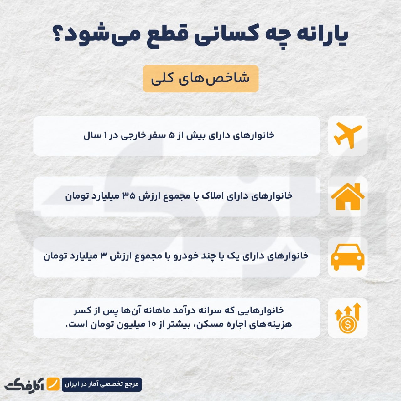 معیارهای حذف یارانه دهک‌های ۸ تا ۱۰ چیست؟