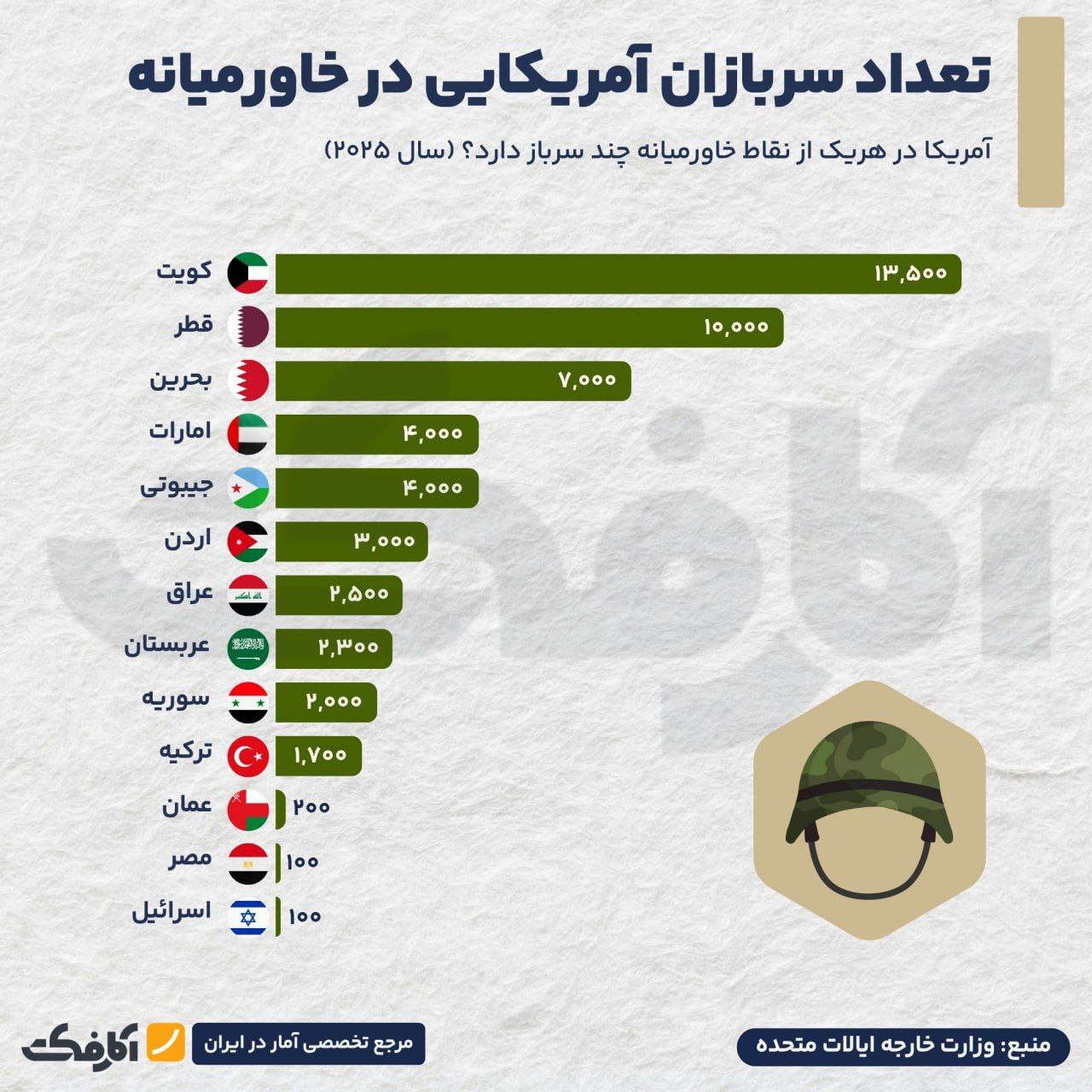بیشترین تعداد سربازان آمریکایی در کدام مناطق خاورمیانه مستقر هستند؟