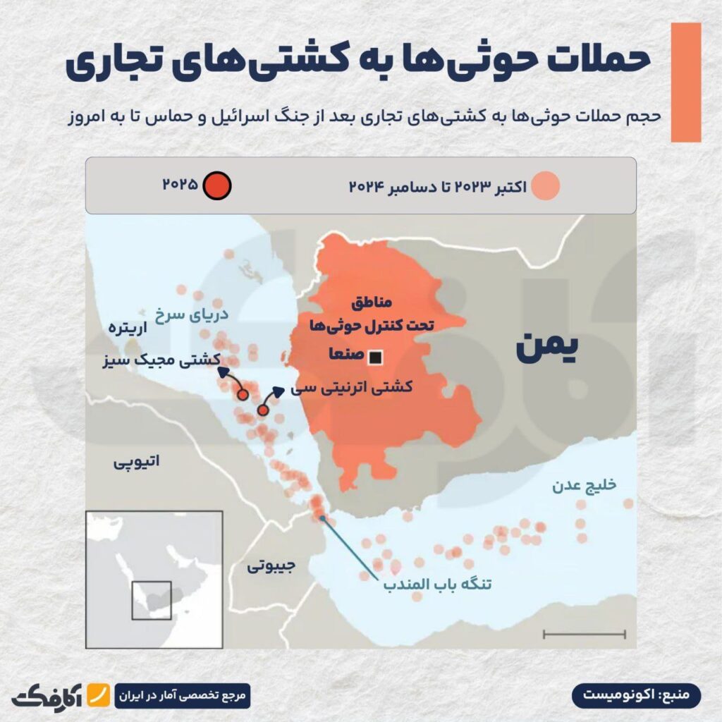 تعداد ترانزیت کالا در بابالمندب از زمان آغاز حملات حوثیها در اکتبر ۲۰۲۳ به شدت کاهش یافته بود و حجم کل آن ۶۰ درصد کاهش یافت.