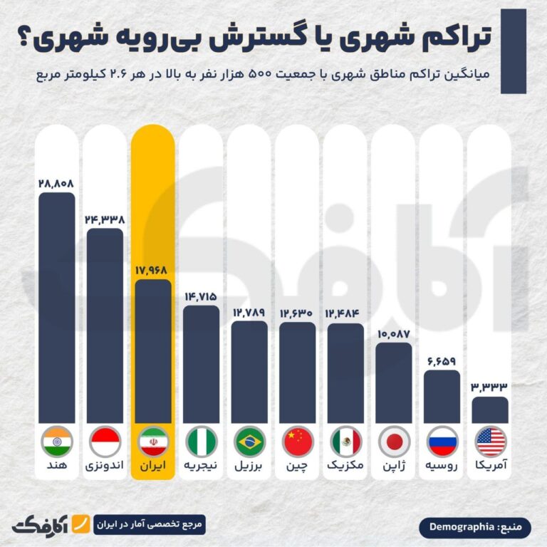 ایران نیز با حدود ۱۸ هزار نفر در هر ۲٫۶ کیلومتر مربع در میان کشورهای پرتراکم شهری قرار میگیرد.