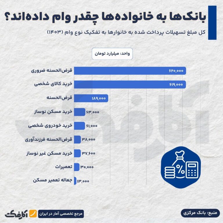 تمرکز اصلی تسهیلات بانکی خانوادهها بر وامهای ضروری و خرید کالاهای مصرفی است که نشاندهنده فشار مالی روزمره و نیاز فوری به نقدینگی است.