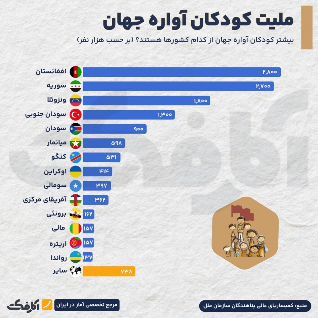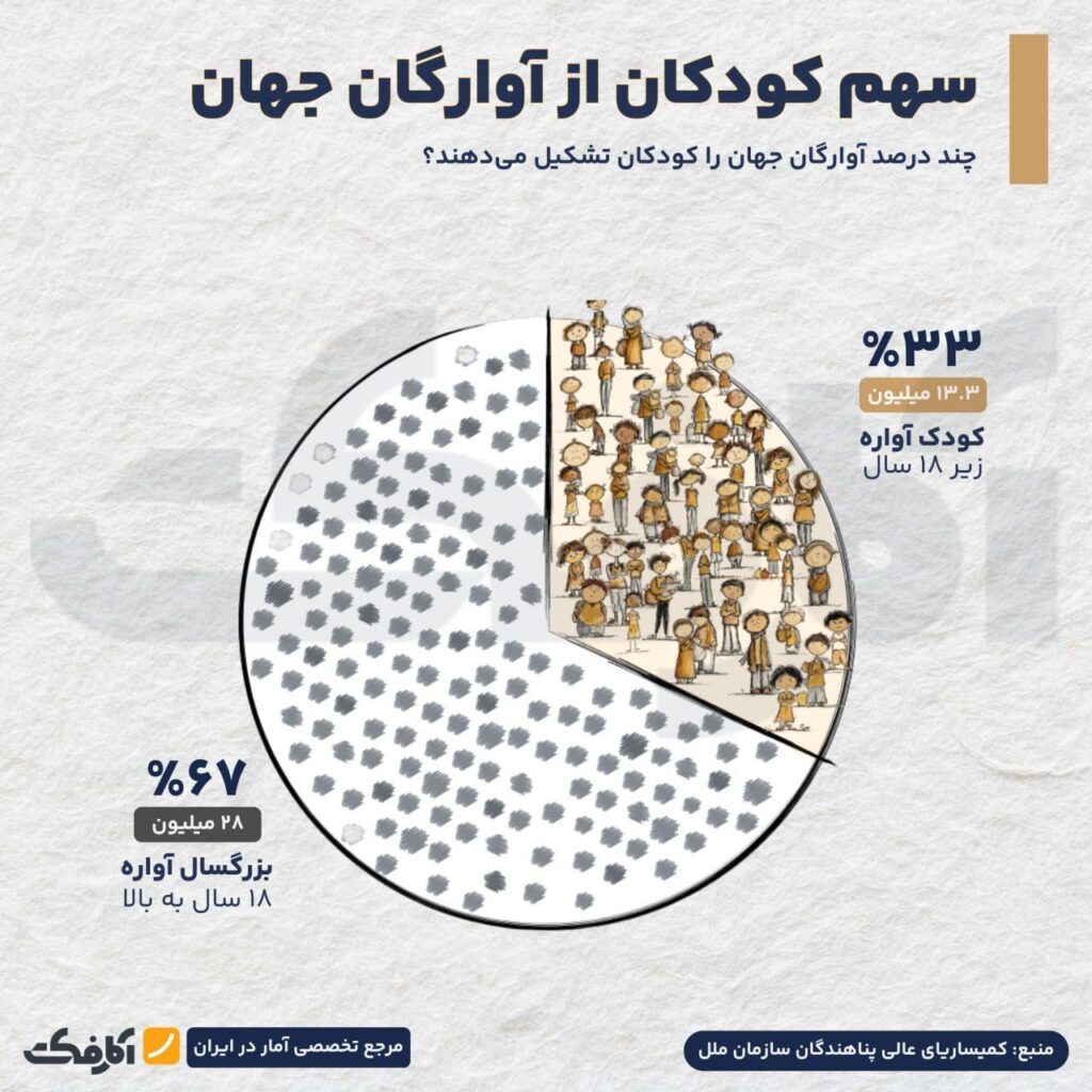 امروز نزدیک به ۱۳ میلیون کودک در جهان بهعنوان پناهنده یا آواره زندگی میکنند؛ یعنی یکسوم کل جمعیت پناهندگان! بیشترین تعداد کودکان پناهنده از کشورهای جنگزدهای مانند افغانستان، سوریه، ونزوئلا و سودان جنوبی هستند.