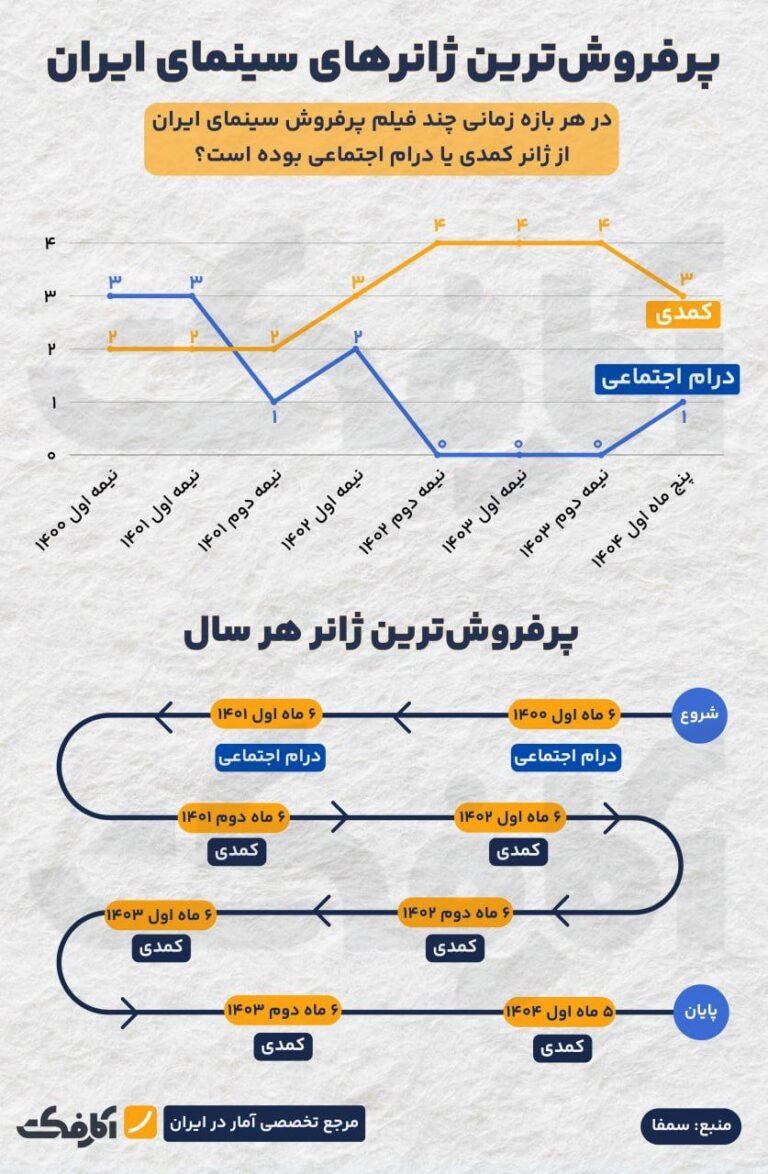 در چهار سال اخیر، فیلمهای کمدی با ۶۰٪ بیشترین سهم را از جدول پرفروشها گرفتهاند.