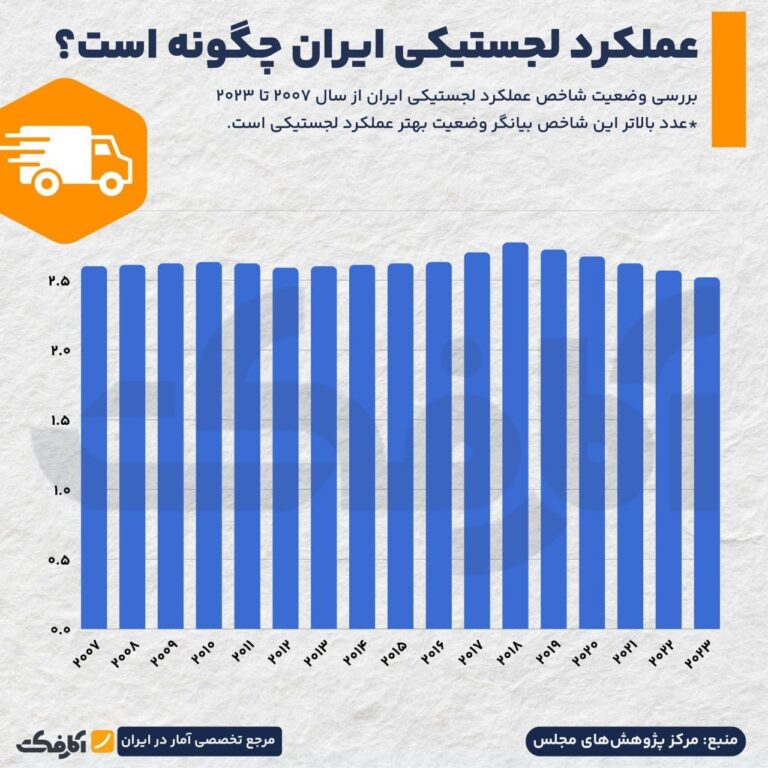 شاخص عملکرد لجستیکی ایران از سال ۲۰۰۷ تا ۲۰۲۳ روندی صعودی داشته و در سال ۲۰۱۸ به بالاترین حد خود رسیده است.