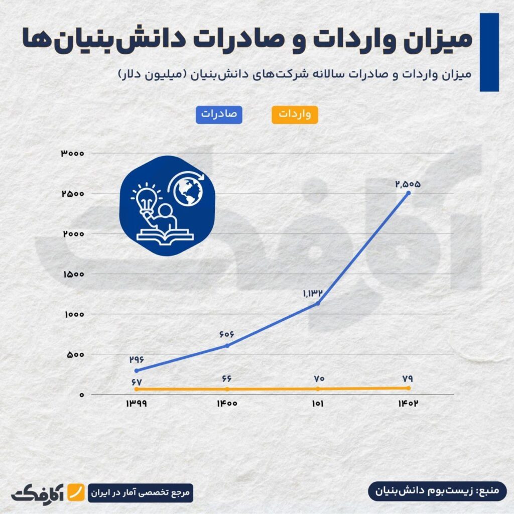 صادرات سالانه شرکتهای دانشبنیان در سال ۱۴۰۲ به ۲/۵۵ میلیارد دلار رسید، در حالی که واردات آنها تقریباً ثابت و نزدیک به ۷۹ میلیون دلار باقی ماند. این نشان میدهد که این شرکتها توانستهاند به تدریج وابستگی به واردات را کاهش دهند.