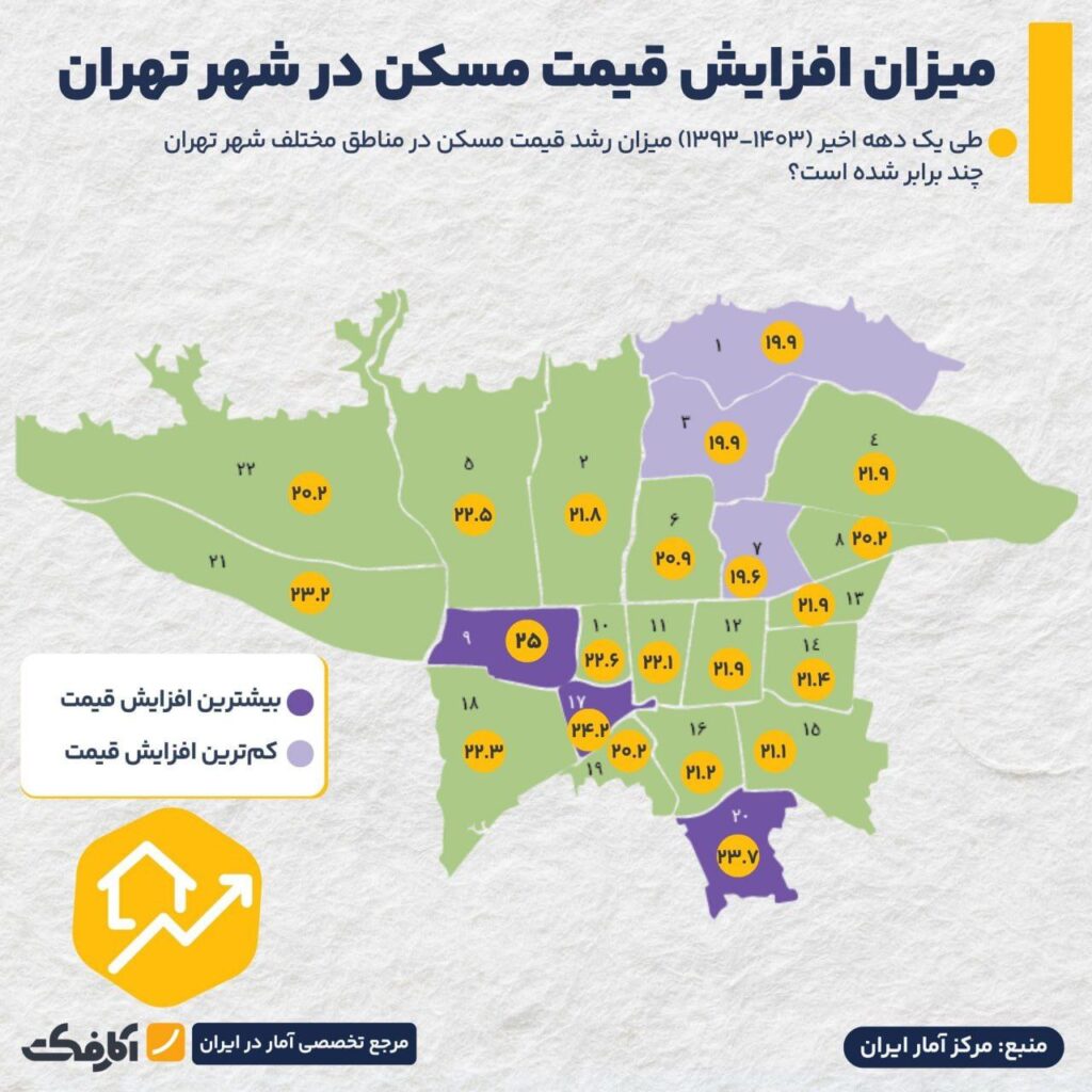 طی یک دهه اخیر مناطق ۱۹، ۱۷ و ۲۰ بیشترین درصد افزایش قیمت مسکن را در بین مناطق ۲۲ گانه شهر تهران داشتهاند.