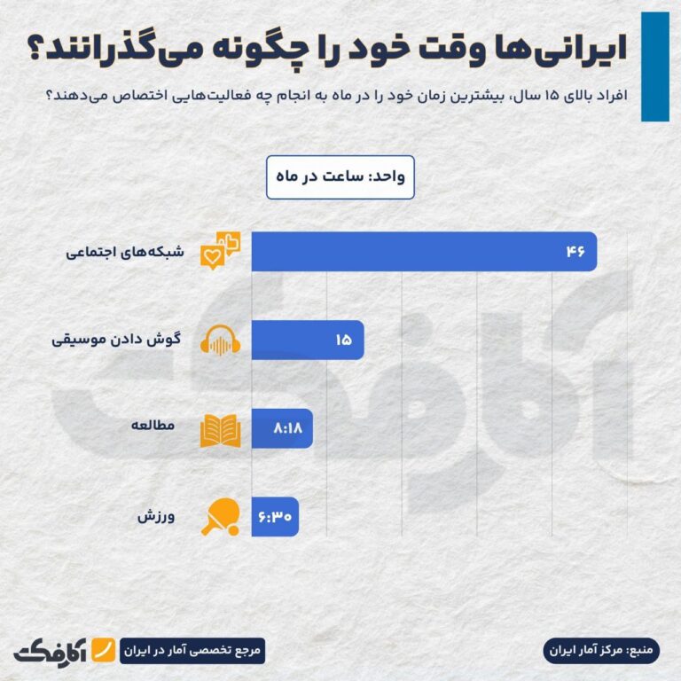 ایرانیها به طور میانگین در ماه ۴۶ ساعت را صرف شبکههای اجتماعی میکنند؛ این میزان، بیش از پنج برابر زمانی است که به مطالعه و ورزش اختصاص مییابد.