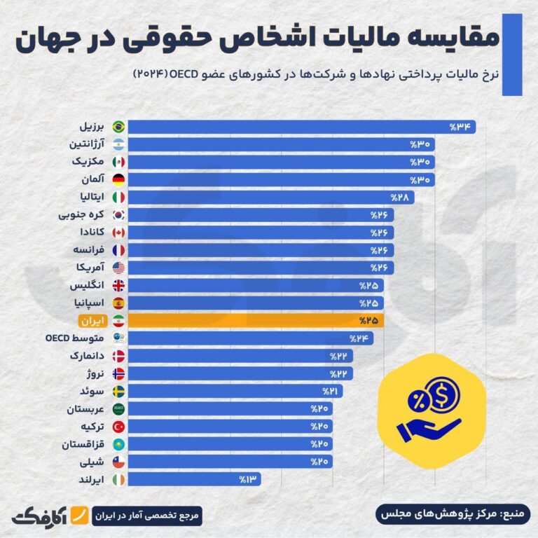 با این حال، نرخ مالیات شرکتها در ایران ۲۵٪ و برابر با میانگین جهانی است.