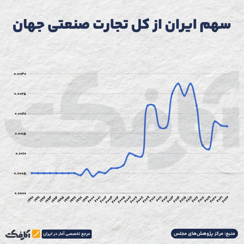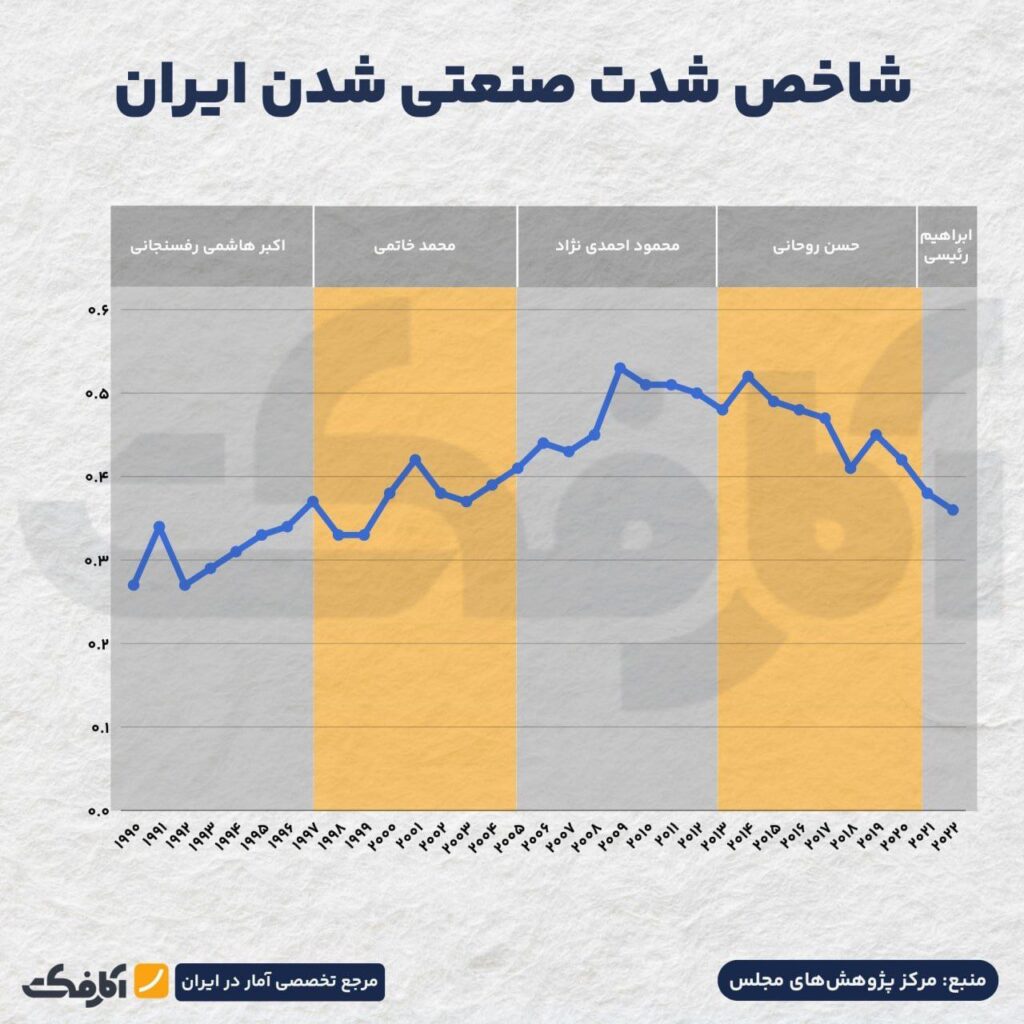 شاخص شدت صنعتی شدن در سالهای اخیر نوسان داشته و سهم ایران از تجارت صنعتی جهان نیز تقریباً ثابت مانده است.