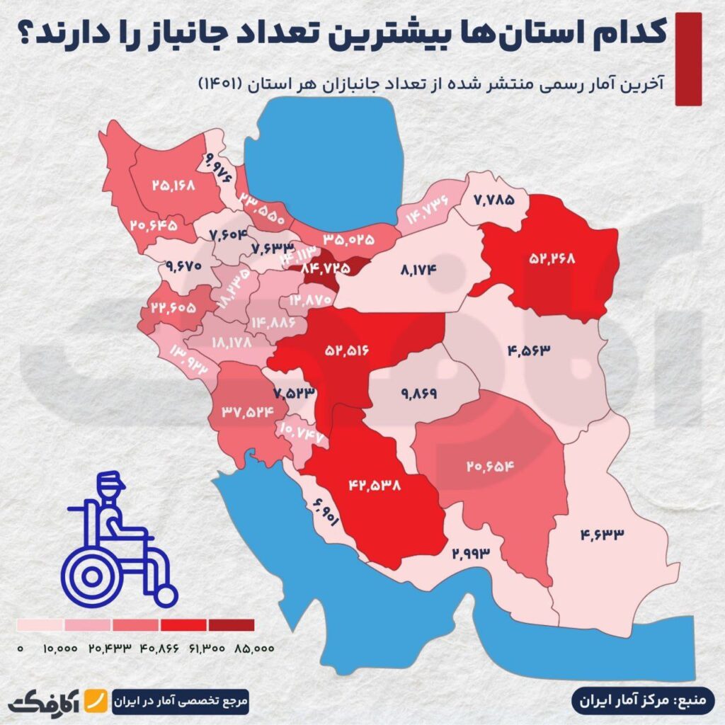 🔹پس از تهران، استان اصفهان و خراسان رضوی با بیش از ۵۲ هزار جانباز در رتبههای دوم و سوم قرار دارند.
