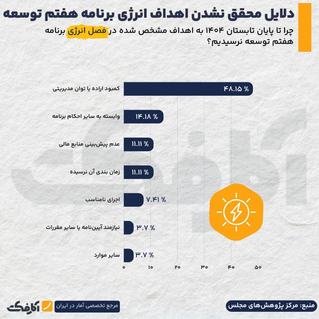 در بخش انرژی، «کمبود اراده یا توان مدیریتی» با حدود ۴۸٪ مهمترین مانع تحقق اهداف بوده است.
