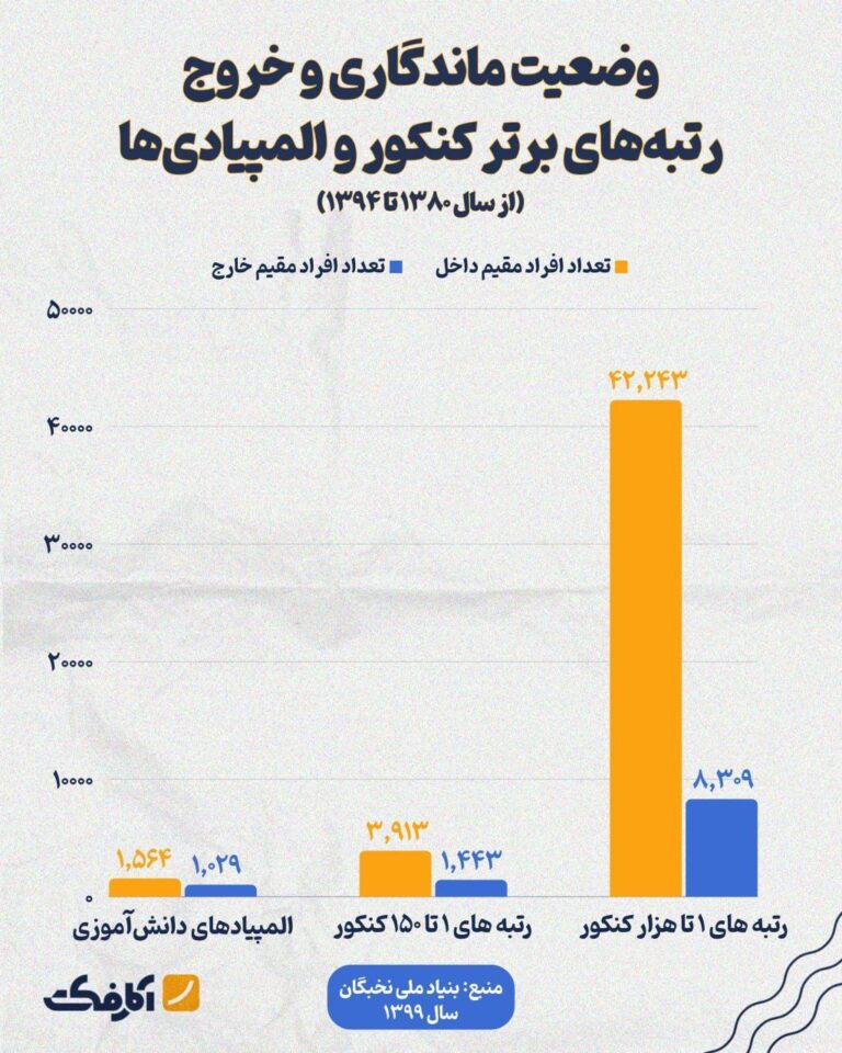 طبق این آمار تعداد رتبههای برتر ۱ تا هزار مقیم کشور ۴۲,۲۴۳ نفر بوده و تعداد ۸,۳۰۹ نفر از رتبههای ۱ تا هزار کشور مهاجرت کرده بودند.